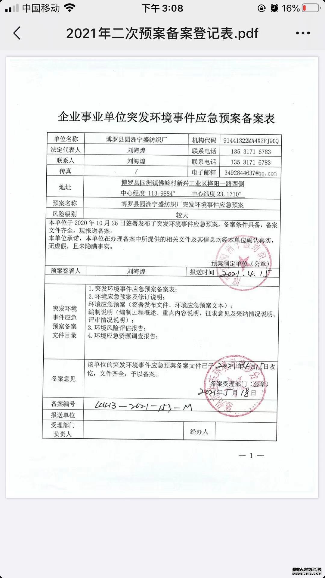 附件鏈接: 《博羅縣園洲寧盛紡織廠突發(fā)環(huán)境事件應(yīng)急預(yù)案?jìng)浒傅怯洷怼?/strong>