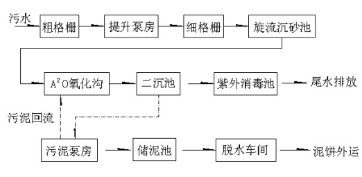 主要生產(chǎn)設(shè)備:粗格柵、提升泵、細(xì)格柵、旋流沉砂池、曝氣管、攪拌器、刮泥機(jī)、鼓風(fēng)機(jī)、回流泵、紫外線消毒系統(tǒng)、污泥濃縮壓濾一體機(jī)。